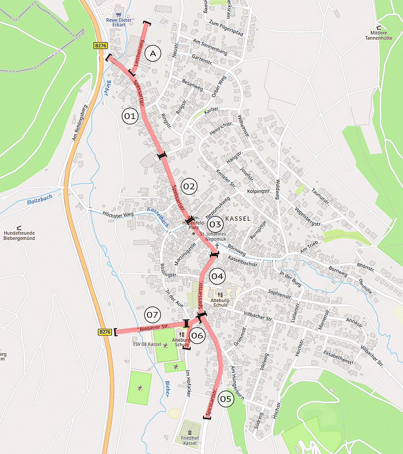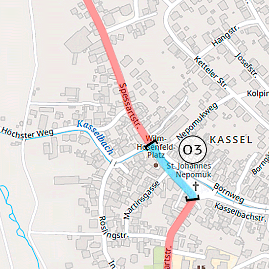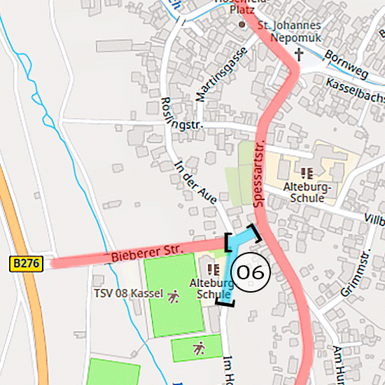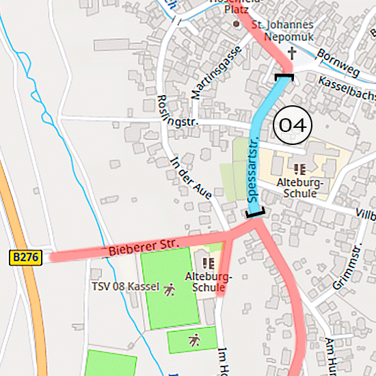 Im vierten Bauabschnitt (Kirche bis Alteburgschule), insbesondere in der Kasselbachstraße, wurden neue Kanalhaltungen eingebaut und Schachtbauwerke versetzt. Dabei kam es zu komplexen Kreuzungen mit Gasleitungen und Breitbandkabeln, die zusätzliche Abstimmungen und Verlegungen erforderlich machten. Eine provisorische Trinkwasserversorgung für die Anlieger wurde eingerichtet, um die Versorgung während der Bauzeit sicherzustellen.